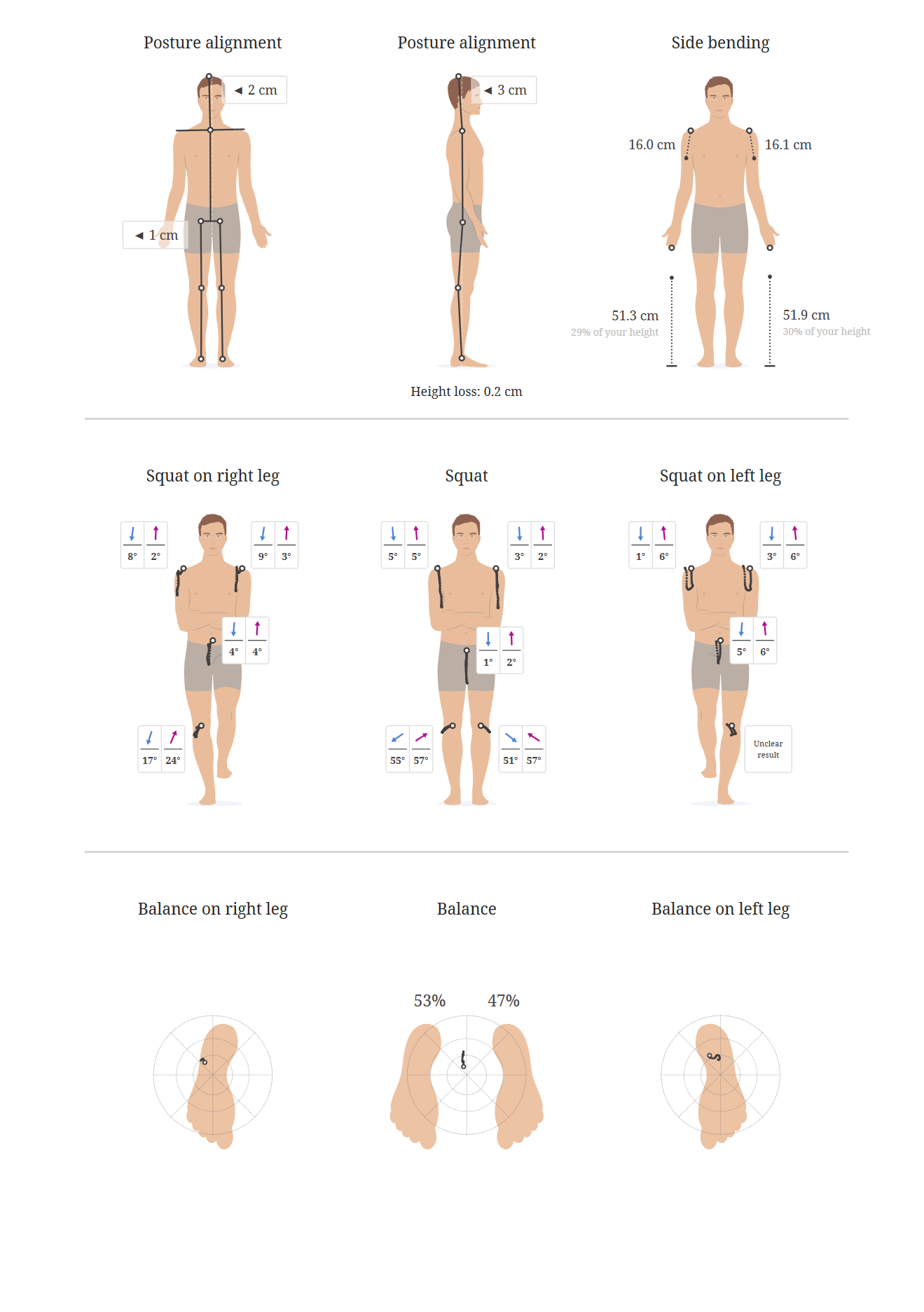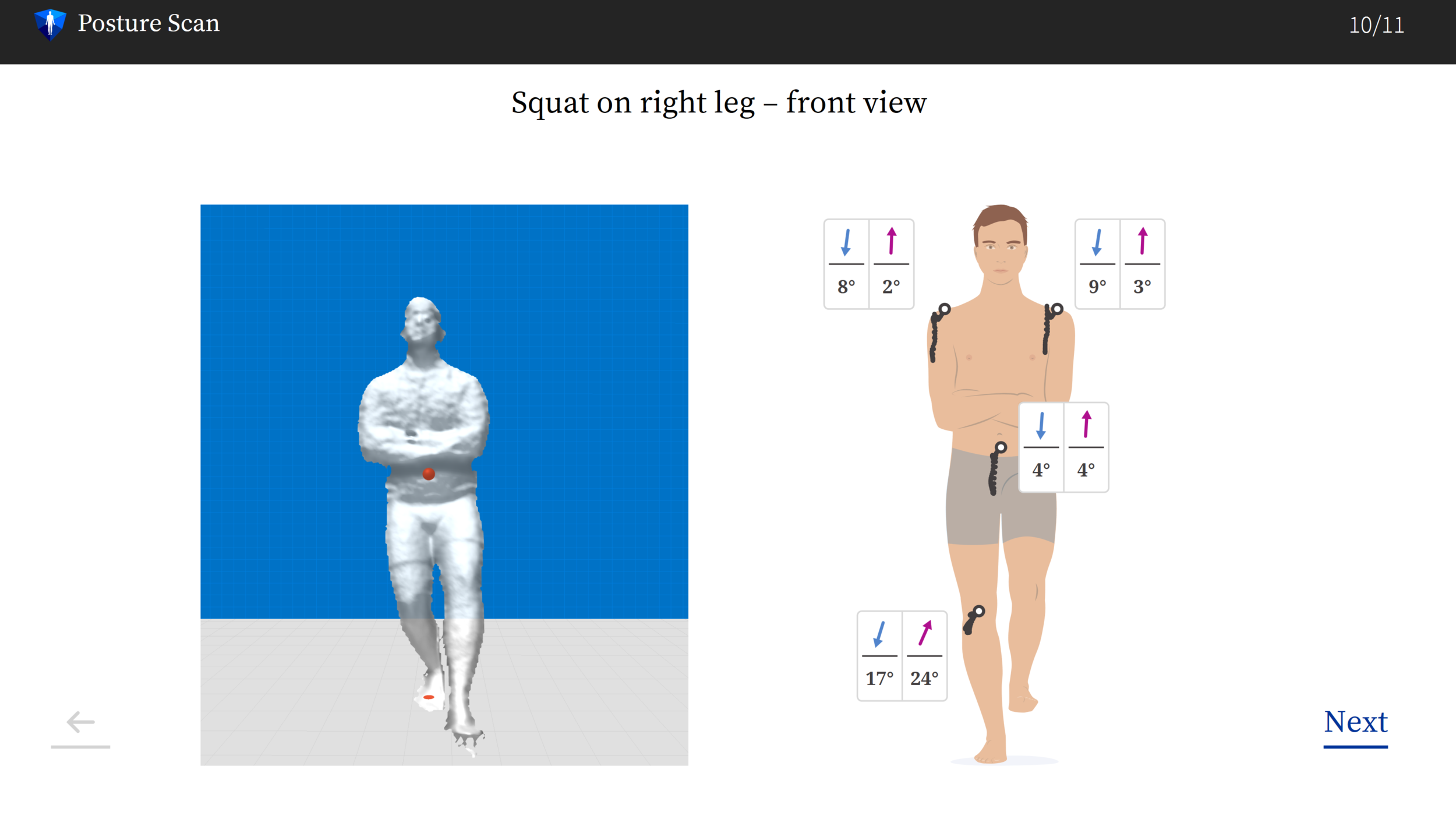 Upon completion of the Posture Scan, the raw data is processed and is available in different formats for practical communication with the test person and useful data analysis for the Provider. The Animated Feedback and Summary report are ready for immediate inspection after Posture Scan. All formats are available on-demand within Movement Lab. The Note Web App only accesses the Summary Report.